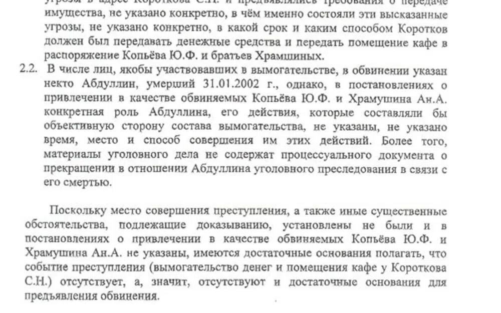 Гуляющий на свободе следователь Целипоткин не успокоился и готовит многотомное дело к передаче в суд. Он ведет против Храмушина не одно дело по покушению на убийство, Глыбу обвиняют в совершении целого ряда преступлений, всплывших в бандитской биографии. В том числе вымогательства. В распоряжении редакции есть весьма объемное письмо-жалоба генерала Шаманова на **официальном бланке командующего Воздушно-десантными войсками Министерства обороны РФ** (исх. № 568/10178 от 05.02.2010) генеральному прокурору РФ Чайке, которое мы также публикуем на сайте газеты. Оно полностью посвящено защите Храмушина и его подельника Копьева, ожидающего суда в следственном изоляторе, обвинению следствия и не имеет никакого отношения к делам ведомства. По сути, это личное письмо Шаманова, которому придан официальный статус.