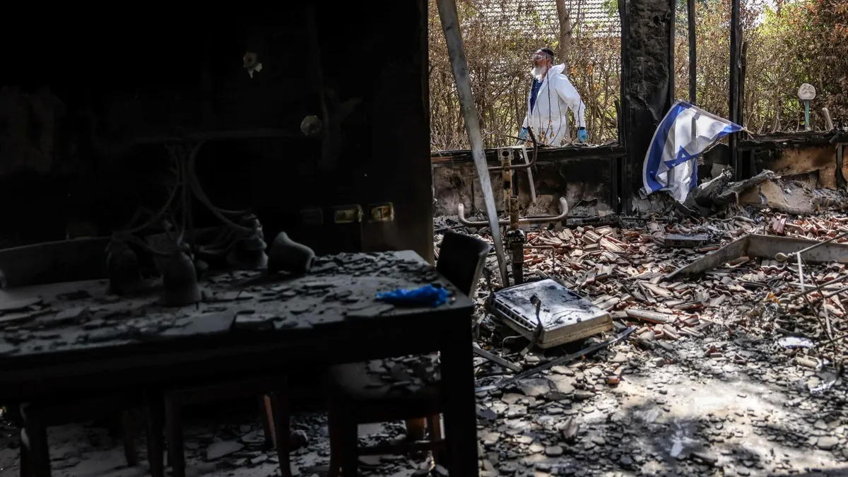 7 октября 2023 года. Тела погибших на дороге недалеко от кибуца Гевим. Фото: OREN ZIV / AFP / East News