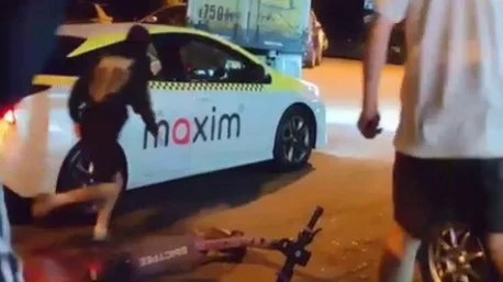 Еще на одной видеозаписи те же парни около того же магазинчика кидают камни в машину такси. Когда водитель выходит, снимающий бодро заявляет: «Новый рамс!» Таксист пытается дать отпор и, убегая, даже хватается в качестве защиты за стоящий рядом электросамокат, потом и за доску. Нападающие, хохоча, окружают таксиста, один из них садится за руль «Приуса», но водителю удается его оттуда вытащить и даже выпустить пассажира. В узбека кидают электросамокат, обливают каким-то пенным напитком, а когда он спешно пытается уехать, машину догоняют и распахивают водительскую дверь.