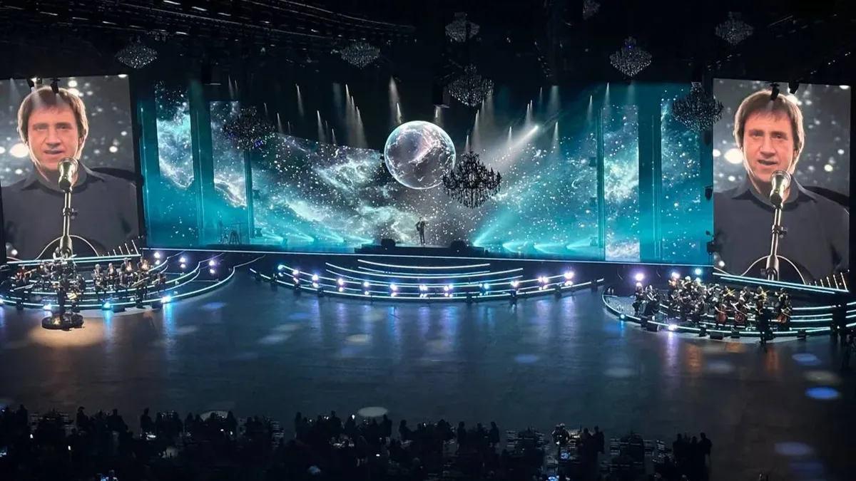 К этому моменту концерт шел уже почти полтора часа — до конца оставалось минут десять, не больше. Но на нерве он не только заканчивался — он с него и начинался. Без пяти восемь с разных сторон ко входу в здание с характерным для этого вечера названием «Live Арена» («живая» то есть) текли непрерывные ручейки зрителей. Над ними периодически загорался баннер: позерски поднятый подбородок воскресшего Высоцкого. Этот по-кошачьи щурящийся на предполагаемое солнце профиль, сгенерированный искусственным интеллектом, уже больше месяца мелькал на всех московских остановках и экранах для афиш, так что даже таксист, подвозивший к «Арене» спросил только: «Концерт сегодня, да?» Чей концерт — уточнять уже было необязательно.