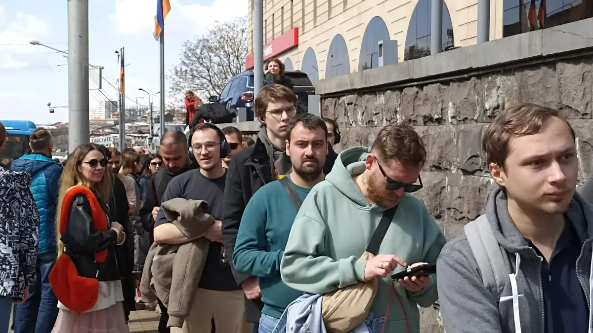 «Люди не могут больше жить в России, и вот им теперь приходится решать вопрос идентичности». Антивоенный митинг в Ереване. Фото: Андрей Новашов