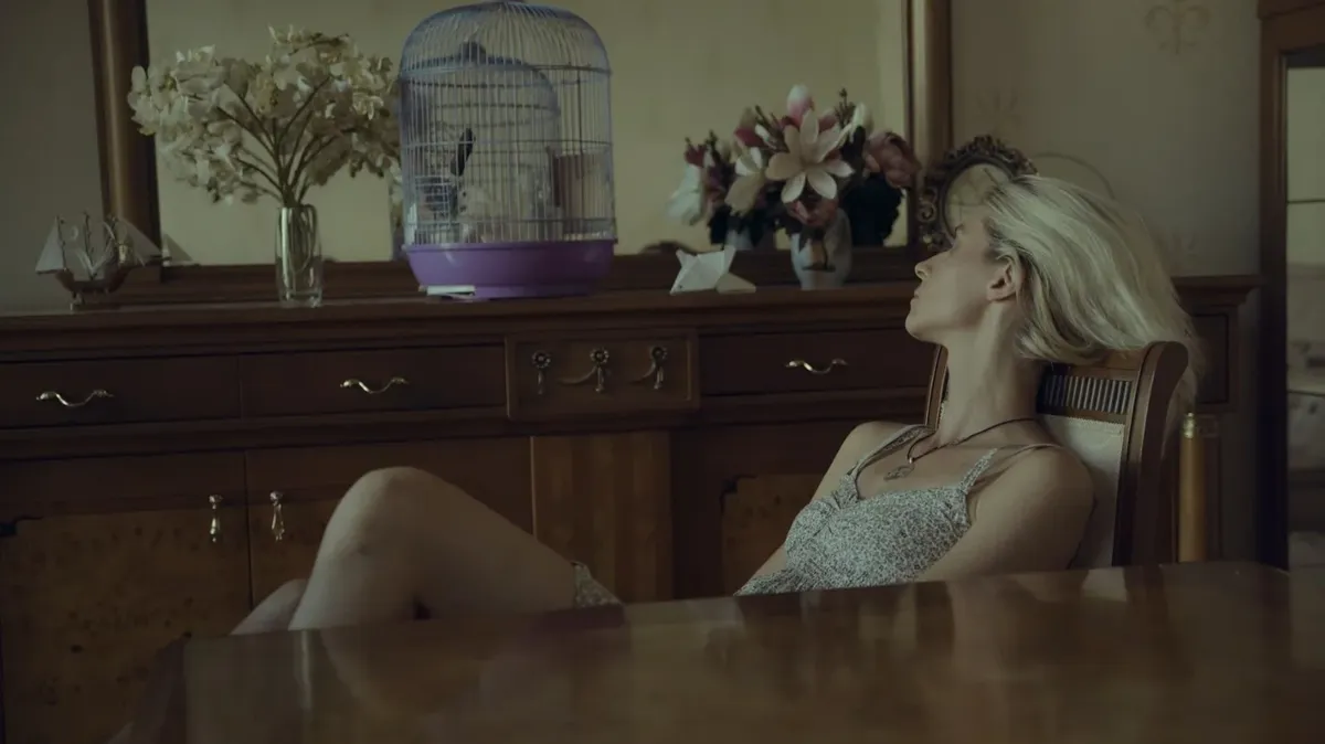 Близость случается — утешение нет. Девушку преследует образ другого мужчины. Она возвращается домой и убивает птицу, поставив клетку в наполняемую водой ванну. В финальном кадре мы видим героиню сидящей на диване. Она кладет белокурую голову на плечо своему фантомному мужу или просто любимому человеку.