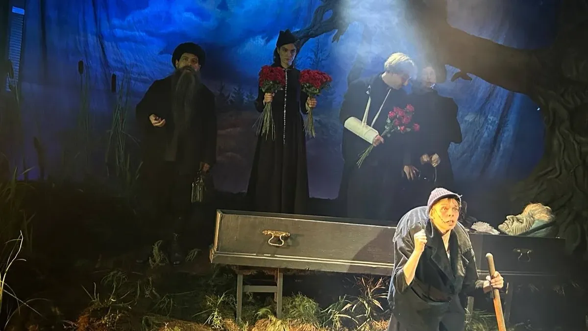 При всей вольности пересказа «своими словами», спектакль о сегодняшнем состоянии социума («Четыре года здесь никто ничего не ловит», Тиша на экономический форум в Питере едет, МФЦ электронные документы на погребение требует) крепко держится за Островского.