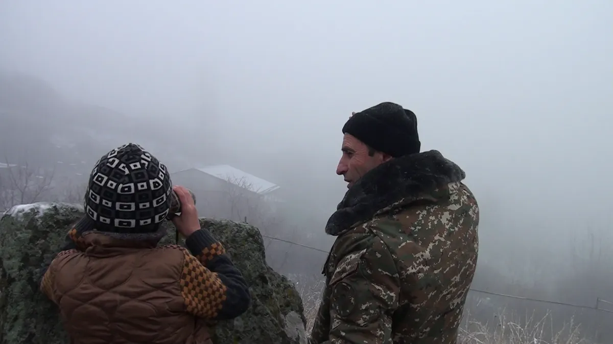 Эта ежедневная рутина землевладения и войны, словно ритм жизни и смерти, пронизывает судьбу семьи Петросян. Глава семьи — военный, и, когда последние члены семьи ложатся спать, он надевает форму и — с оружием наперевес — смотрит в темную даль, пытаясь предугадать действия потенциальных захватчиков. Ему также приходится стоять и на границе, которая тянется по окружающим деревню холмам. С этих холмов он видит родной дом, детей и жену, отправляющихся по своим делам.