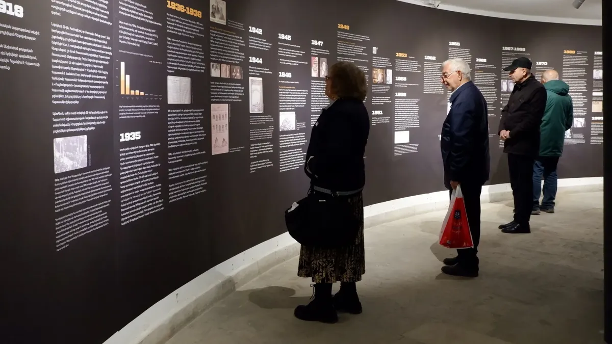 Вдоль стены музея — информация и фотографии в хронологическом порядке. Точка отсчета — 1915 год, геноцид армян в Османской империи. Без этого события невозможно понять специфику советских репрессий в Армении. Армяне, бежавшие от геноцида в разные страны, после Второй мировой войны, поверив Сталину, приехали в Советскую Армению. Многих из них в 1949 году отправят в Сибирь в ходе самой массовой из сталинских депортаций армян. Кроме того, борьба за право помнить о жертвах геноцида в 1960-е годы станет одним из главных требований подпольных общественных инициатив, участников которых репрессировали в позднесоветские годы.