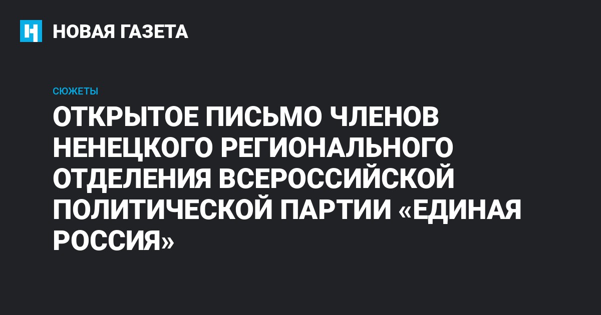 Обратиться с открытым письмом нас вынуждает критическая ситуация, сложившаяся в Ненецком региональном отделении партии «Единая Россия».