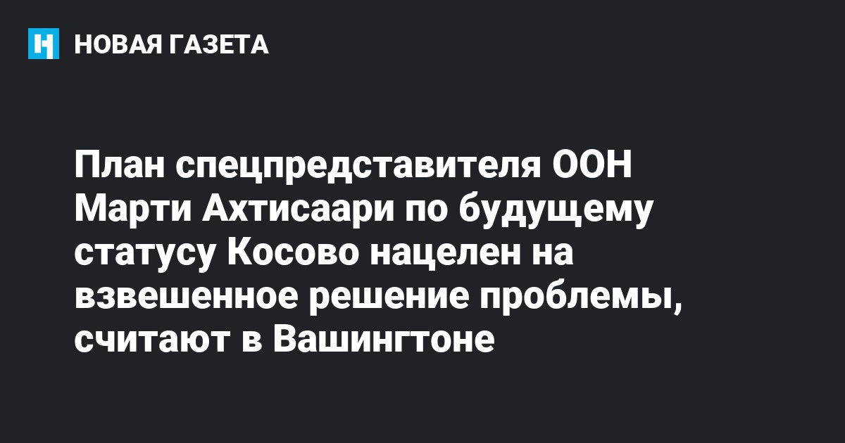 Заместитель государственного секретаря США Роземари Ди Карло заявила вчера, что "план Ахтисаари - это возможность стабилизировать ситуацию в регионе". "США поддерживают этот план, нацеленный на справедливое и взвешенное решение Сербии и Косово. Он приглашает обе стороны на решение проблемы, обе стороны имеют право знать все о своем будущем и активно в нем участвовать, обе стороны должны найти свое место в евро-атлантических структурах", - сказала Ди Карло в Таллине на пресс-конференции по итогам встречи министров иностранных дел и обороны стран балтийско-американской и адриатико-американской хартий, передает Интерфакс. США, подчеркнула она, выступает "за участие всего западно-балканского региона в единой евро-атлантической семье".