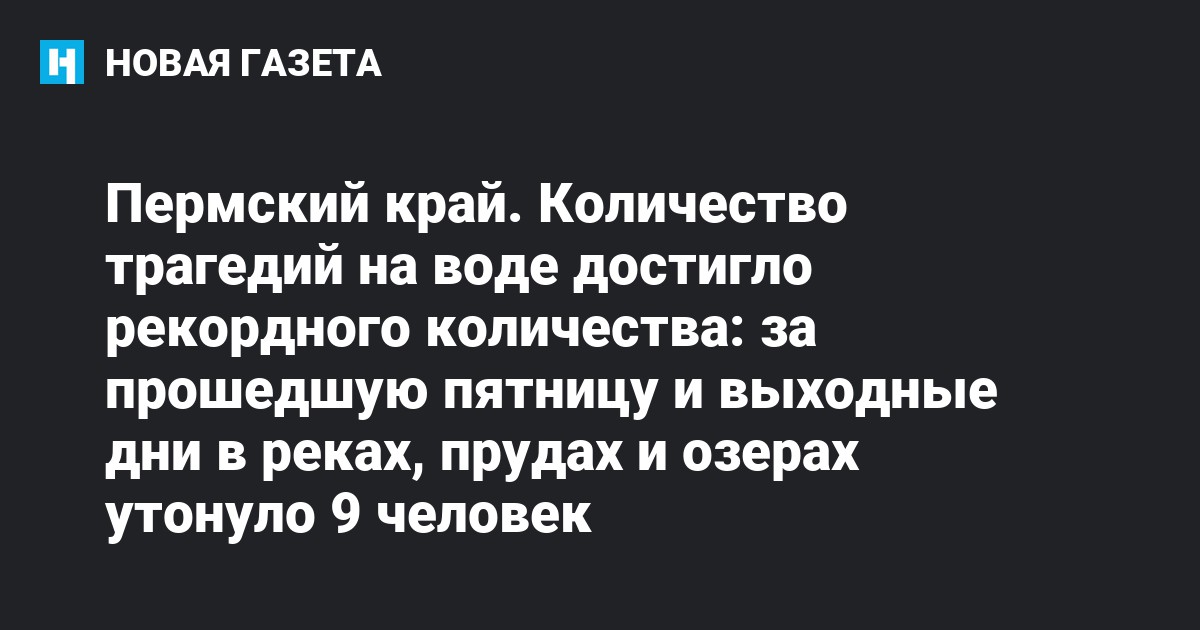 Только реки в Пермском крае по совокупной протяженности составляют 90 тысяч километров. А есть еще многочисленные озера, пруды, искусственные водоемы. С 18 по 20 июля в них утонуло 9 человек. География мест происшествий на воде широка. В реке Кама утонули в г. Перми мужчина средних лет, в г. Добрянке – пожилая женщина, в реке Сылва были найдены трупы шестилетней девочки и мужчины пенсионного возраста, в прудах г.Очер, села Нердва Карагайского района и села Шерья Нытвенского района утонуло по одному мужчине средних лет, в карьере г. Соликамск захлебнулся молодой парень. А в г. Оса в реке Осинкаозеро утонул пожилой мужчина.