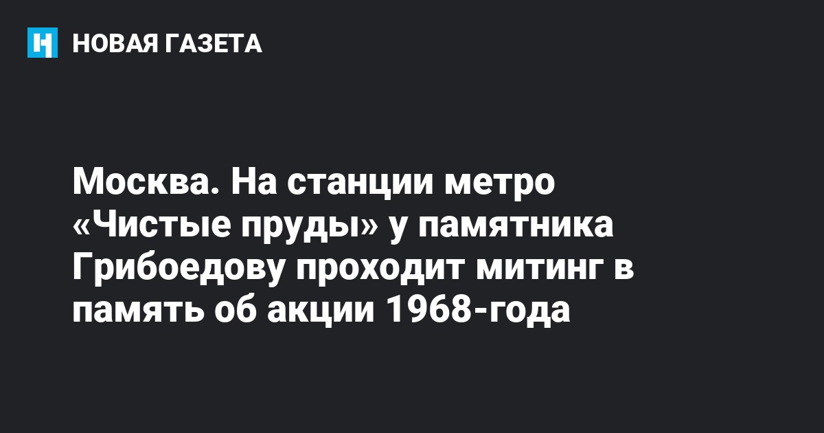 На станции метро «Чистые пруды» у памятника Грибоедову проходит митинг в память об акции 1968-года. Напомним, ровно сорок лет назад восемь диссидентов вышли с плакатами на Красную площадь, чтобы выразить протест против введения советских войск в Чехословакию.