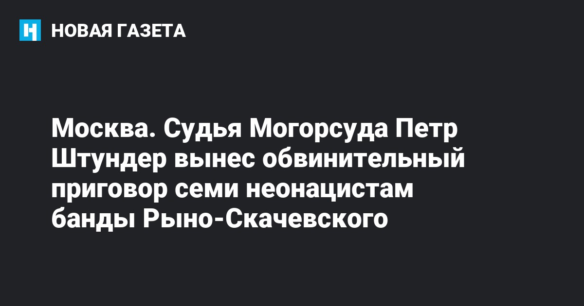 Сегодня в Мосгорсуде был публично зачитан приговор по делу неонацистской банды Рыно-Скачевского, совершавшей убийства, нападения и грабежи в 2006-2007 году. В связи с тем, что сам процесс был закрытым, собравшиеся смогли ознакомиться только с резолютивной частью приговора.