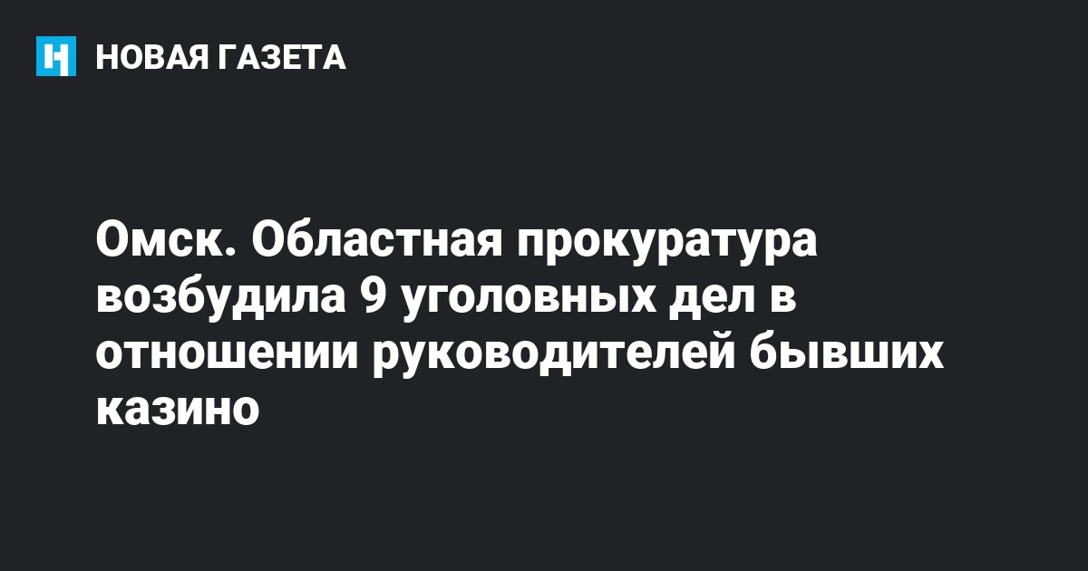 Омские прокурорские решили всерьез вытащить из подполья игорный бизнес. C 1-го июля ими возбуждено по результатам проверок бывших казино 9 уголовных и 7 административных дел. Нарушение запрета на организацию и проведение азартных игр выявлено в 13-ти заведениях, расположенных в областном центре и 2-х – в городе Калачинске.