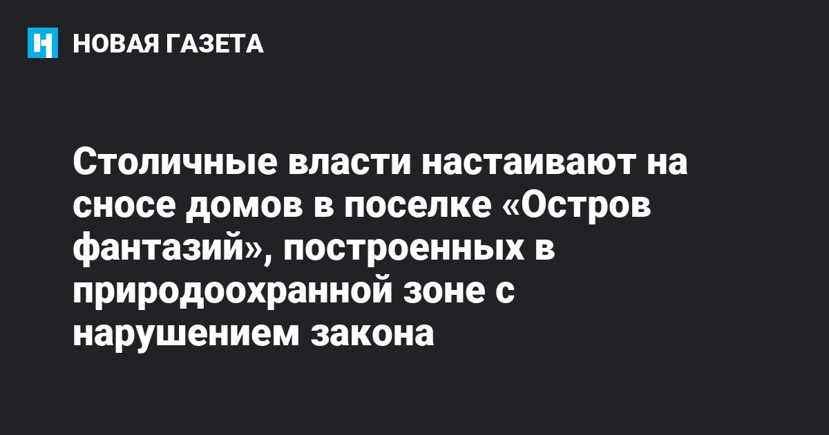 Об этом заявил в пятницу пресс-секретарь мэра Москвы Сергей Цой, передает Интерфакс. «В последнее время в СМИ появилась информация, что все вопросы в отношении «Острова фантазий» решены, судьба поселка определена. Некоторые даже позволяют себе превратно трактовать выступление некоторых представителей правительства Москвы, - сказал Цой. - Все это - провокация и ложь. На так называемом «Острове фантазий» дома, которые построены в природоохранной зоне, с нарушением всех законов, без разрешительной документации, в соответствии с судебными решениями должны быть снесены. А другие дома должны быть проверены соответствующими инстанциями на законность их постройки. Любые действия правительства города будут соответствовать букве закона".