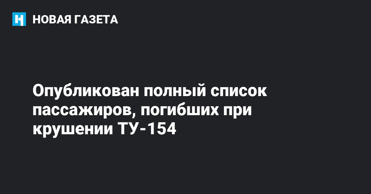 Полный список погибших в результате крушения Ту-154 под Смоленском приводит издание «Газета.Ru».
