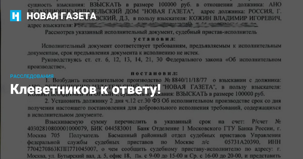 Г-н Хреков недвусмысленно намекал на решение Басманного суда по иску Управления делами президента и Владимира Кожина к «Новой газете» по статье «Второй раз — подряд» («Новая газета», №74 от 12 июля 2010 года). Суд обязал опубликовать нас опровержение нескольких утверждений и выплатить Кожину 130 тысяч рублей. Перед тем как присылать такие письма, Виктору Хрекову было бы неплохо самому изучить законодательство и порядок исполнения судебных решений: исполнительный лист от судебных приставов с указанием расчетного счета Владимира Кожина мы получили только в десятых числах мая, то есть после «ответа» Виктора Хрекова. Как только исполнительный лист оказался у нас на руках, мы перечислили деньги Кожину и по согласованию с приставами опубликовали опровержение в том же номере, в котором шла речь о реконструкции Могилы Неизвестного Солдата.