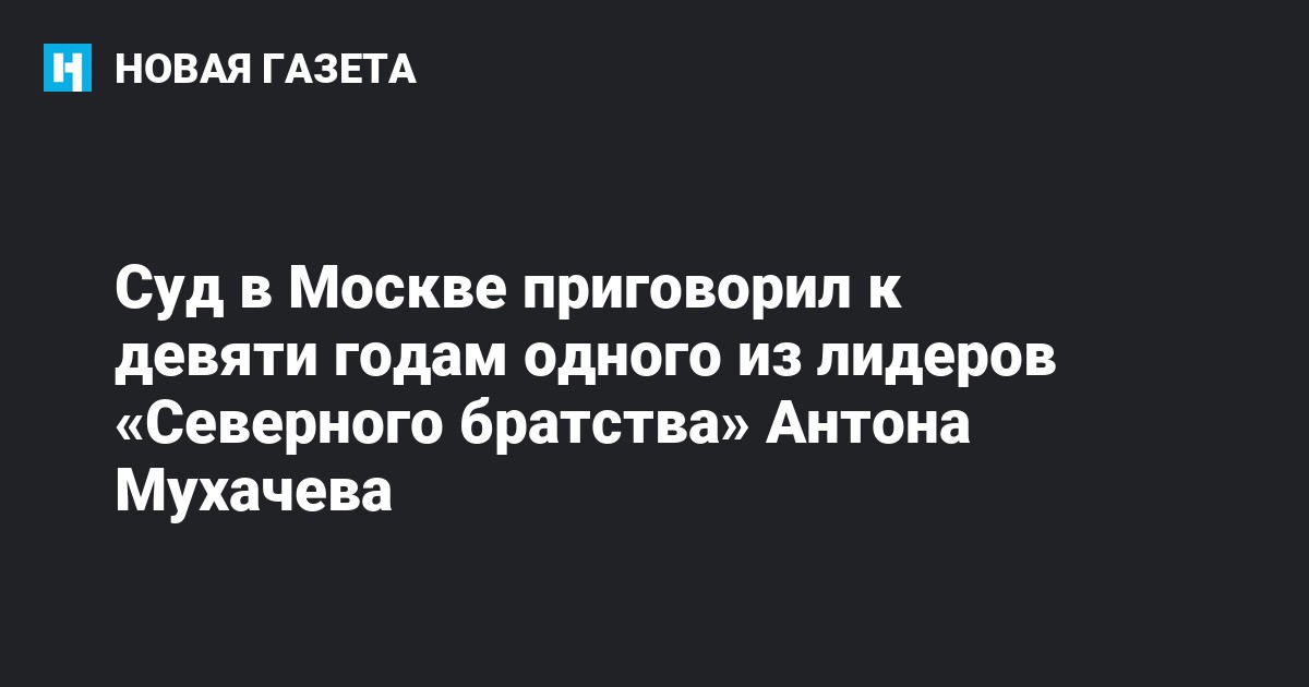 Савёловский суд Москвы сегодня приговорил к девяти годам лишения свободы одного из лидеров националистической группировки «Северное братство» Антона Мухачева, сообщает РИА «Новости». Его признали виновным по статье «Экстремизм», по которой он получил три года, а также по четырём эпизодам мошенничества, за которые ему дали девять лет. Отбывать наказание Мухачев будет в колонии строго режима.