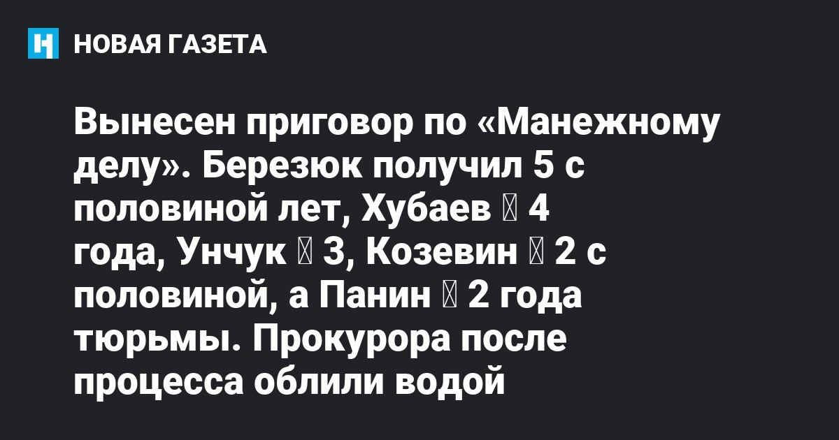 С Игоря Березюка, которому грозил наибольший срок – 8 лет – сняли часть обвинений. Свидетель Кубраков, на показаниях которого строилось обвинение в организации беспорядков, в зале суда заявил, что подписал показания под давлением. Так развалилось обвинение Березюка в разжигании расовой ненавистии в вовлечении несовершеннолетнего в преступление. С Унчука и Панина же сняли обвинение в в призывах к массовым беспорядкам. В результате Березюк получил пять с половиной лет, Хубаев – четыре года, Унчук – три, Козевин – два с половиной, а Панин – два года тюрьмы. При этом Хубаеву и Козевину предстоит отбывать наказание в колонии строгого режима, из-за отягчающего обстоятельства – они были ранее судимы.
