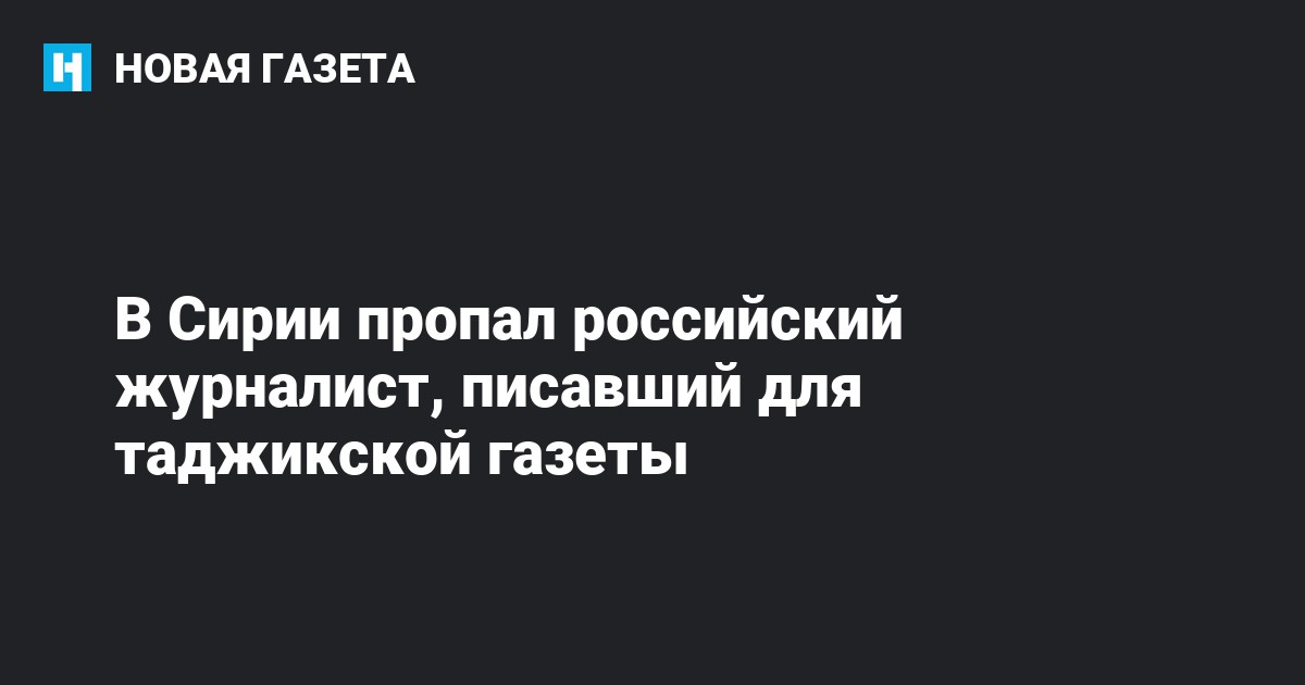 Российский журналист Александр Рыбин, работавший корреспондентом таджикской газеты «Бизнес и Политика», без вести пропал в Сирии, сообщает «Газета.Ру» со ссылкой на ИТАР-ТАСС. Об этом агентству рассказал главный редактор издания Джамшед Ульмасов.