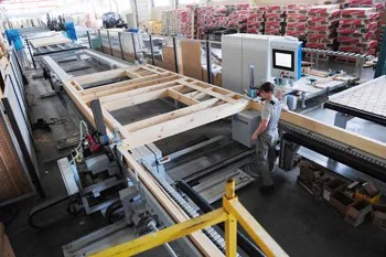 Подтверждаем: «Стезя», завод по производству модулей для строительства быстровозводимого жилья, действительно превосходит даже самые смелые фантазии. Это полностью автоматизированная линия сборки, практически исключающая человеческий фактор. Если по-простому: немецкие станки самостоятельно сушат и калибруют доски, безжалостно бракуют те, которые наши специалисты без колебаний пустили бы в дело. А дальше, согласно загруженному проекту, немецкие компьютеры при помощи российских рабочих создают элементы будущего дома. Именно так — а не наоборот: творческая сметка отечественного Кулибина тесно ограничена технологическими рамками немецкого оборудования.