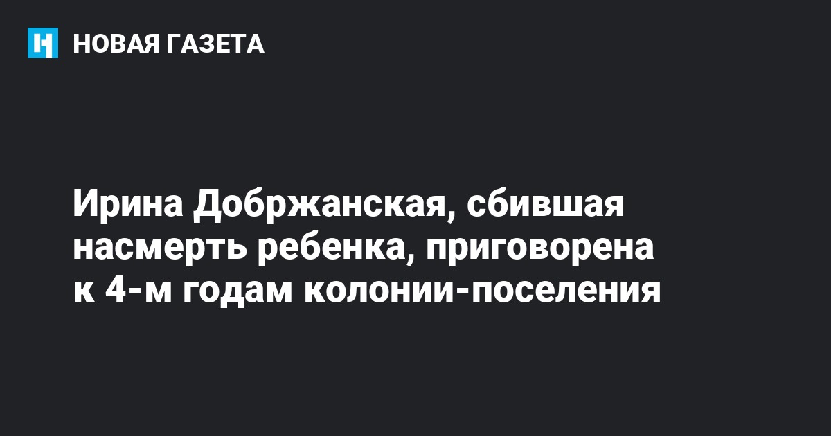 Кроме того, суд обязал ее выплатить потерпевшей стороне компенсацию в полтора миллиона рублей. 20-летняя Ирина Добржанская сбила женщину с ребенком в октябре минувшего года. Девочка скончалась на месте, ее мать была госпитализирована с тяжелыми травмами.