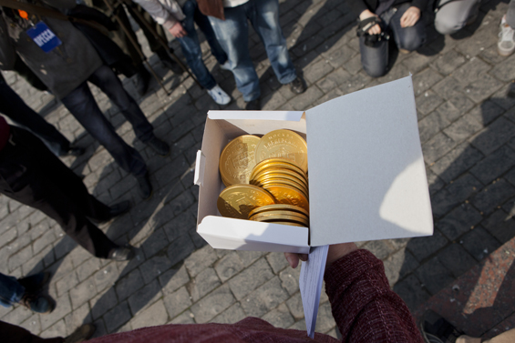 Около 20 человек, готовые проверить полицию, собрались у памятника Героям Революции 1905 года. Там добровольцы разделились на группы и получили шоколадные медали, чтобы вручать их образцовым полицейским, а также открытки: в них предполагалось вписать имена сотрудников без бейджей и отправить в прокуратуру.