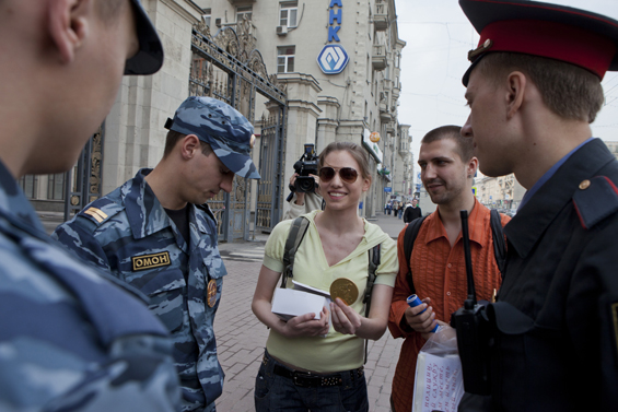 Наша группа отправилась на Курский вокзал. Рыжая Юля – самая активная из всей группы – резво подскакивала к полицейским, объясняла про проверку документов и записывала их имена в блокнот. «Я просто не даю себе времени засомневаться», – сказала она позже, признавшись, что очень стесняется. Впрочем, сотрудники полиции были на удивление обходительны и доброжелательны. «А мы вас ждем!» – улыбались активистам в ответ на просьбу предъявить документы.