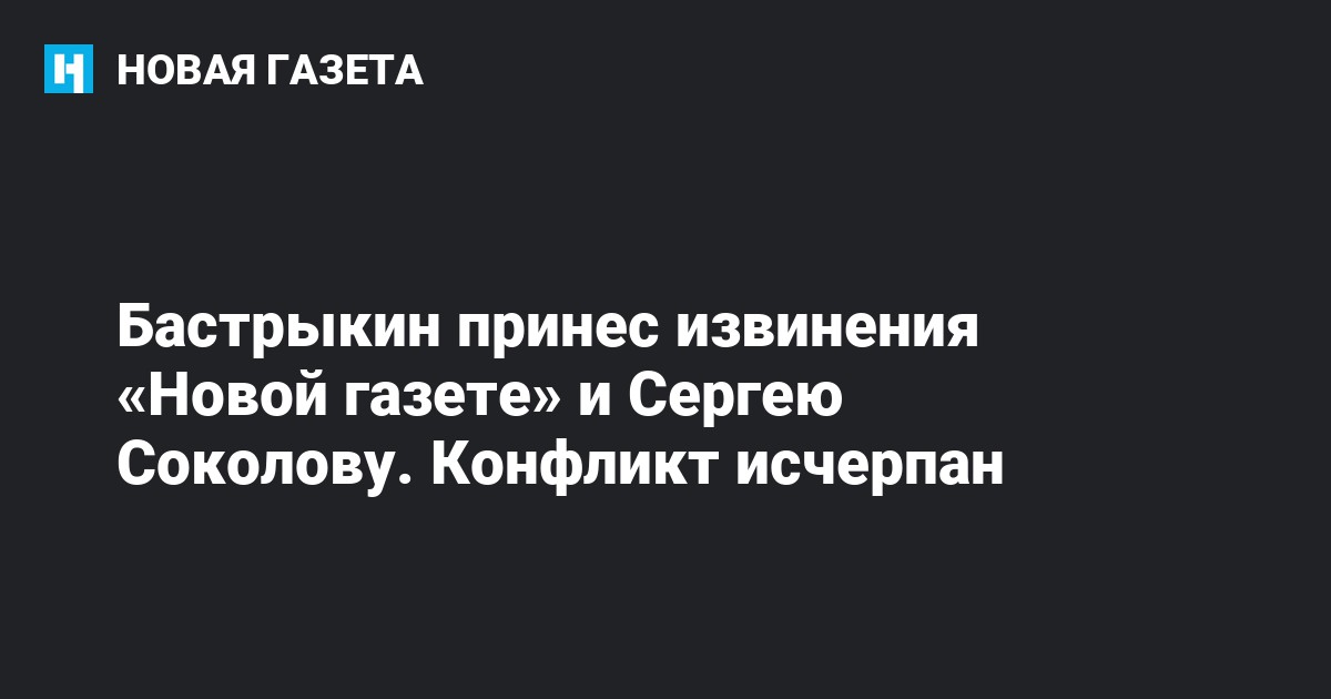 «У всех бывают срывы. Извинения принимаем. Не будем дробить день на части, это был тяжелый день 4 июня. Нам надо продолжать работать. Нашему сотруднику Соколову больше ничего не угрожает. Конфликт исчерпан», – заявил Дмитрий Муратов.