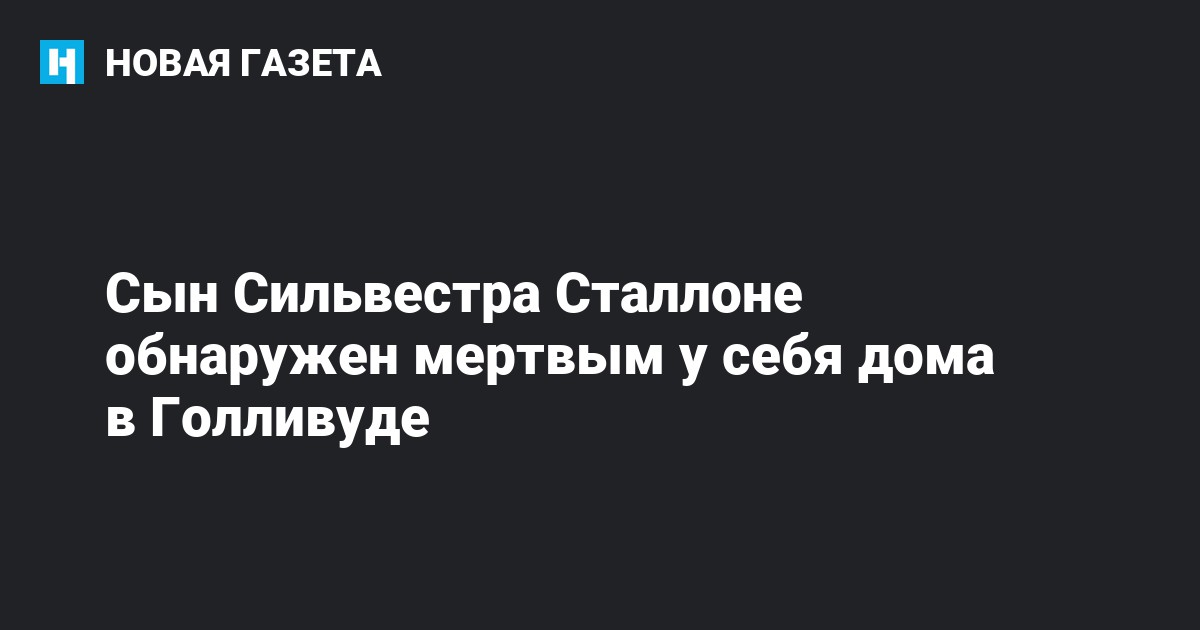 Сын актера Сильвестра Сталлоне, который тоже работал в киноиндустрии, Сэйдж Сталлоне обнаружен мертвым в своем доме в Голливуде, сообщает Reuters. Смерть Сейджа подтвердил его адвокат.
