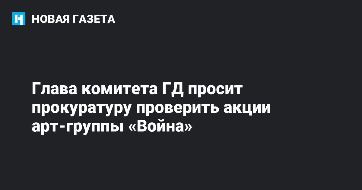 Комитет Госдумы по вопросам семьи, женщин и детей обратился к Генеральному прокурору РФ Юрию Чайке с просьбой провести проверку по факту акций арт-группы «Война», куда входили девушки из Pussy Riot.