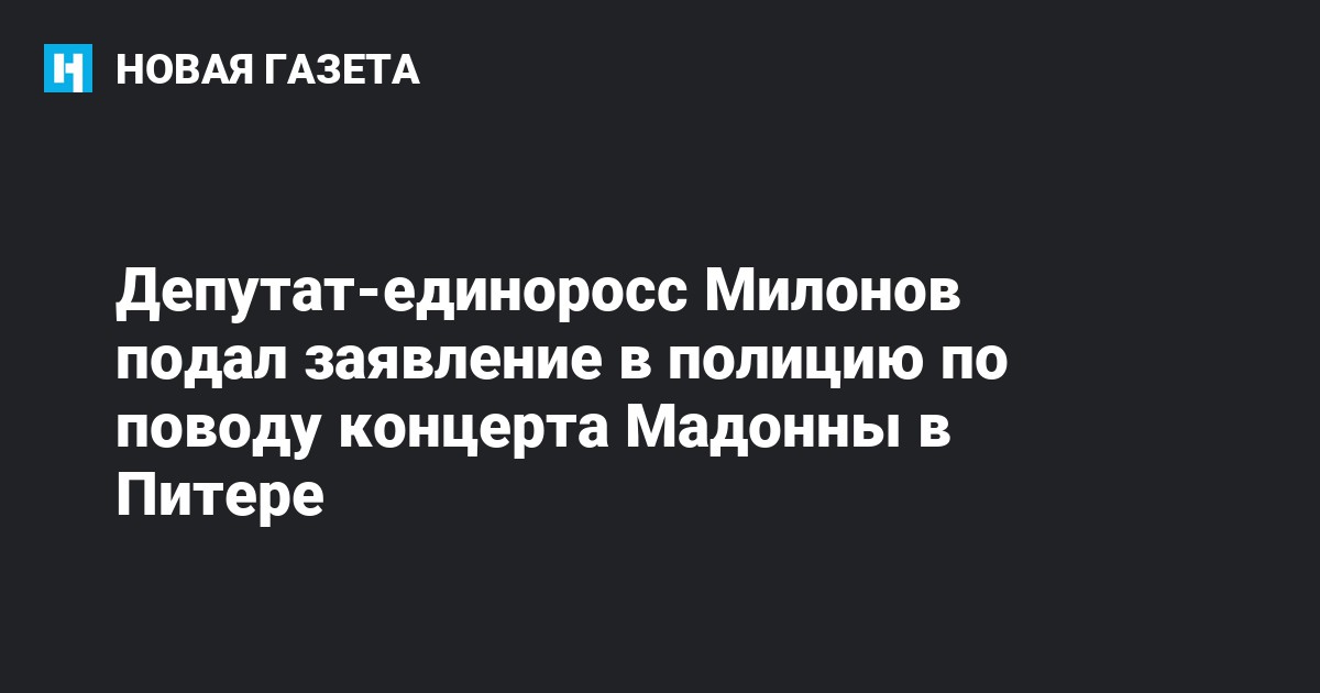 Аппарат питерского депутата-единоросса Виталия Милонова подал заявление в полицию о нарушениях закона, допущенных, по мнению некоторых активистов, на концерте Мадонны.
