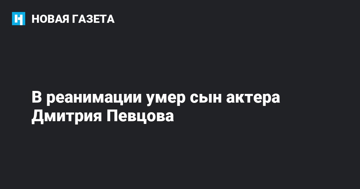 Сын актера Дмитрия Певцова скончался сегодня в реанимации, так и не придя в сознание. Об этом сообщает «Российская Газета».