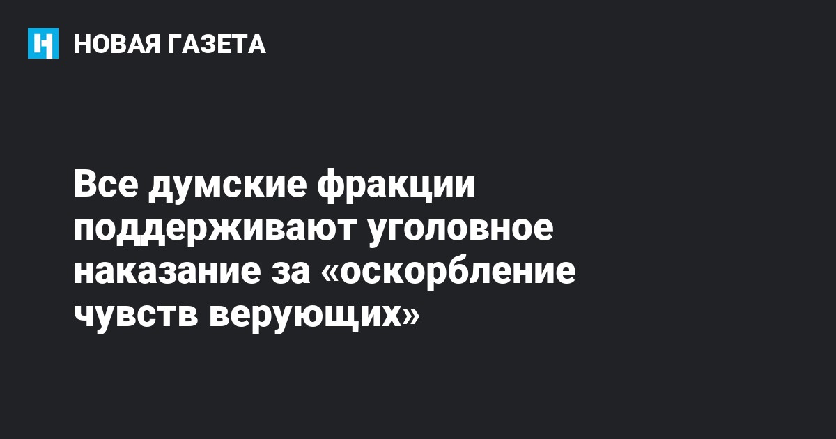 Сегодня в Госдуме обсуждалось введение новой статьи в уголовный кодекс РФ №243.1 «Оскорбление религиозных убеждений и чувств граждан», который поддержан всеми думскими фракциями, сообщают «Ведомости» со ссылкой на свои источники.