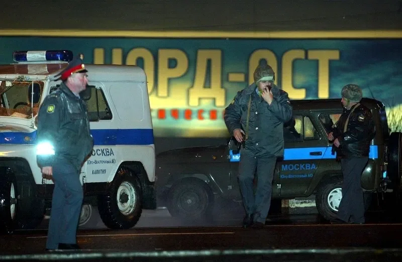У здания Театрального центра на Дубровке. Фото: EPA-EFE