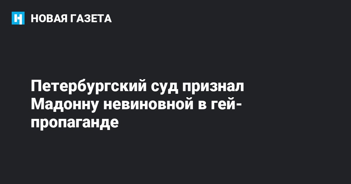 Мадонна и организаторы ее концерта не виновны в ведении какой-либо ЛГБТ-пропаганды во время шоу поп-звезды 9 августа в Северной столице. Решение в пользу певицы сегодня около 20 часов вынес Московский районный суд Петербурга, не только отказав истцам, но и обязав их оплатить все судебные издержки ответчиков.