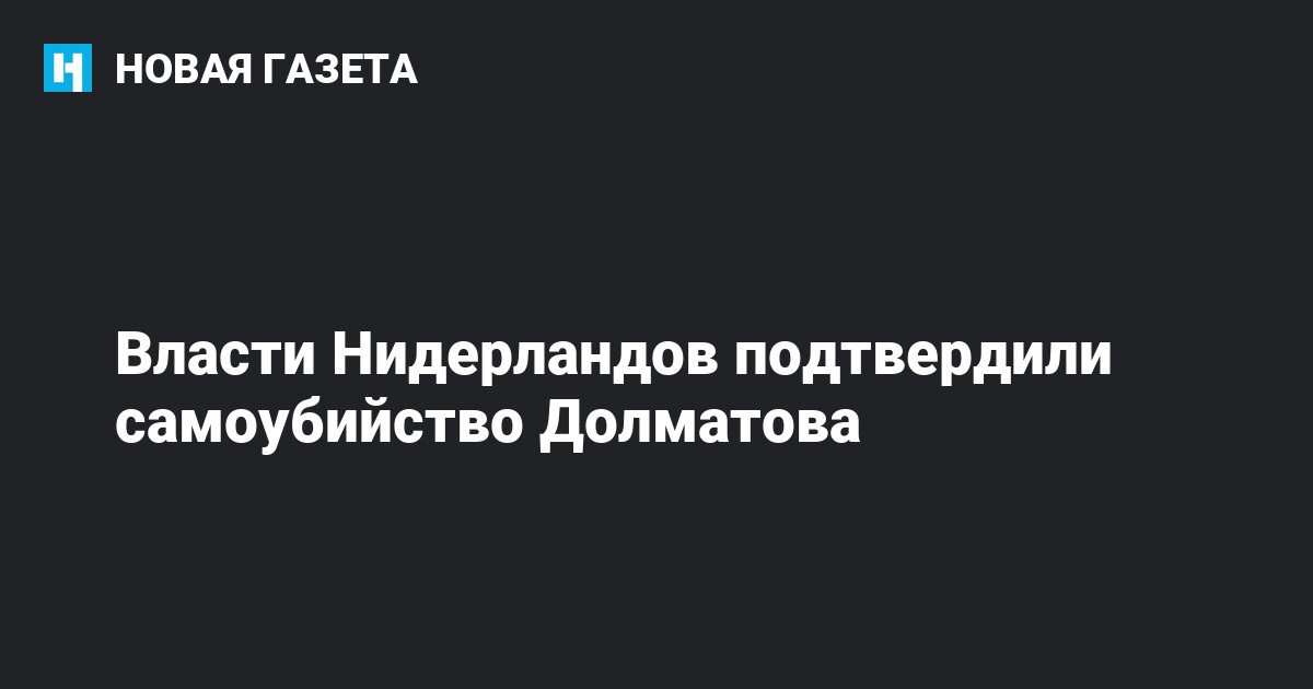 Российский активист Александр Долматов покончил с собой в центре временного содержания в Роттердаме. Это подтвердила в четверг пресс-секретарь министерства безопасности и юстиции Нидерландов Шарлотте Ментен.