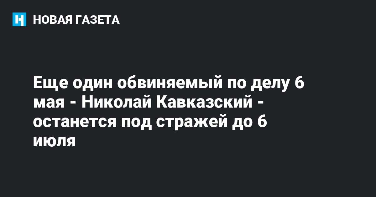 В тюрьме Николай продолжает правозащитную деятельность. Недавно он написал статью "Что делать с тюрьмами" о плохих условиях содержания людей под стражей. Заседанием суда Кавказский воспользовался, чтобы рассказать: место для прогулок в СИЗО - помещение со стенами и потолком, где просвет для свежего воздуха загорожен колючей проволокой, и заявить: содержание человека в клетке противоречит принципам гуманизма. Защита ходатайствовала о том, чтобы Николая отпустили под подписку или поручительство. Следователь Карасев скороговоркой зачитал схожие для всех "узников 6 мая" мотивы продления ареста: может скрыться и продолжить совершать преступления, окажет давление на свидетелей (последнее особенно интересно, ведь единственный свидетель обвинения по делу Николая уже допрошен следователями).