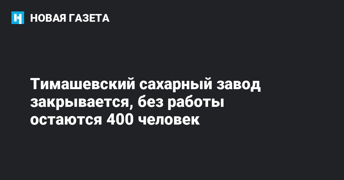Работники сахарного завода, расположенного в кубанском городе Тимашевске, отправлены в вынужденный отпуск, вплоть до октября. Предприятие обанкрочено, а правила диктует зарубежная фирма. Профсоюз завода стремится удержать ситуацию под контролем, проводя якобы публичные акции, на которых запрещено общаться с прессой.