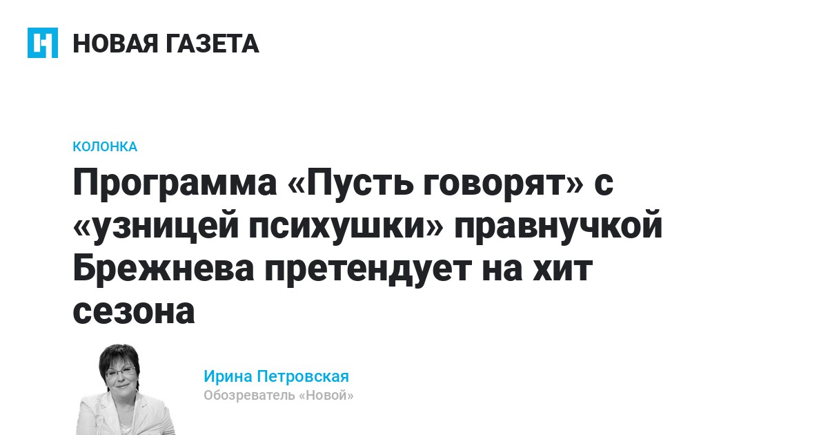 Истории из разряда «богатые тоже плачут» востребованы аудиторией еще больше, чем сюжеты про «женщин с бородой». Исповедь дочери Людмилы Гурченко, столь не похожей на свою блистательную мать, шокирующие откровения дочки Маши Распутиной, которую родная мать якобы также лишила жилья и отправила в богадельню, собирали рекордные рейтинговые урожаи. А уж правнучка всесильного некогда генерального секретаря ЦК КПСС, оказавшаяся сначала на помойке, а потом в «дурдоме» (так, не стесняясь, аттестовал клинику для душевнобольных ведущий программы «Пусть говорят»), сулила Первому каналу подлинный и безоговорочный аншлаг.