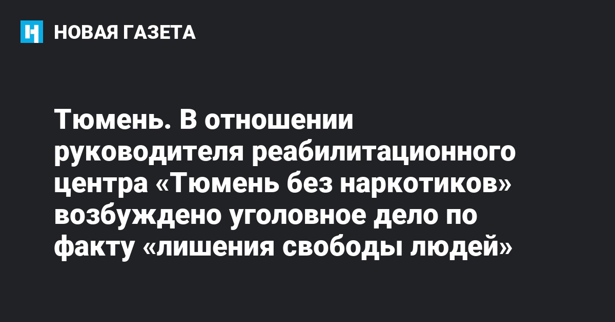 Следственное управление СК РФ по Тюменской области предъявило обвинение руководителю центра лечения от наркотической и алкогольной зависимости по статье 127 УК РФ (незаконное лишение свободы, не связанное с похищением).