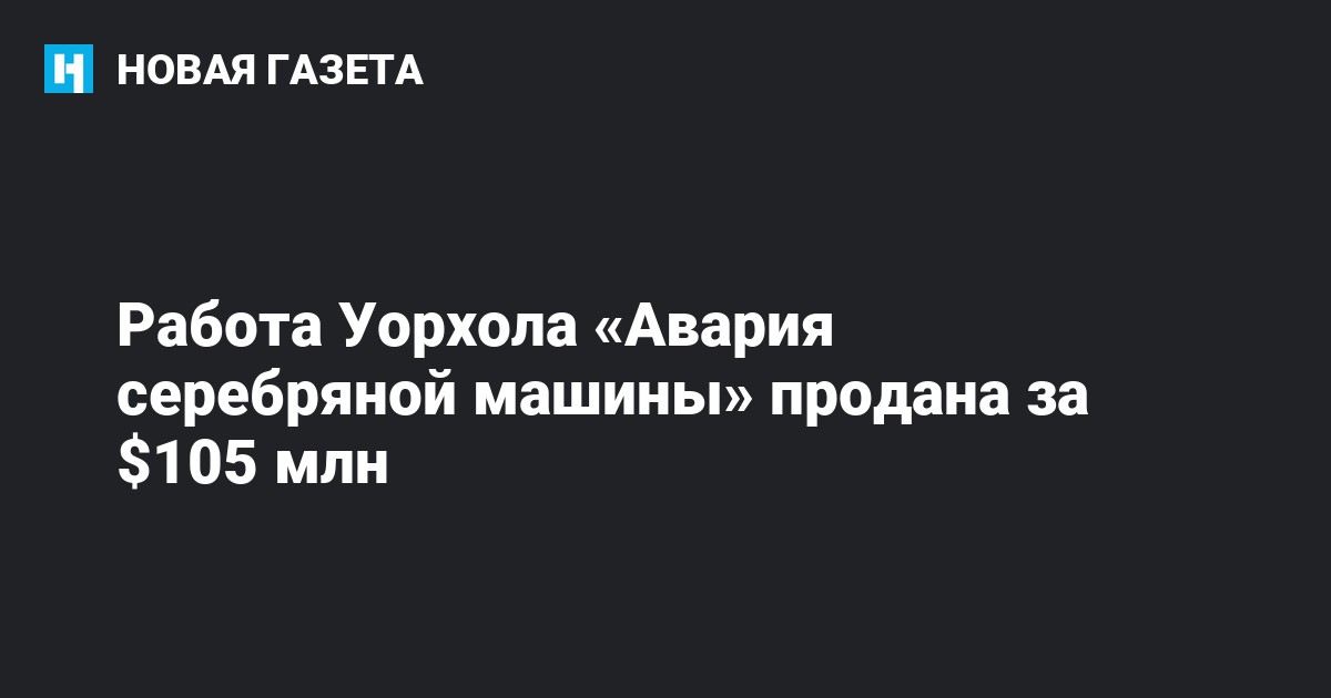Картина «Авария серебряной машины», созданная в 1963 году американским художником Энди Уорхолом, была продана за 105,45 млн долларов на аукционе Sotheby's в Нью-Йорке,сообщает РИА Новости.