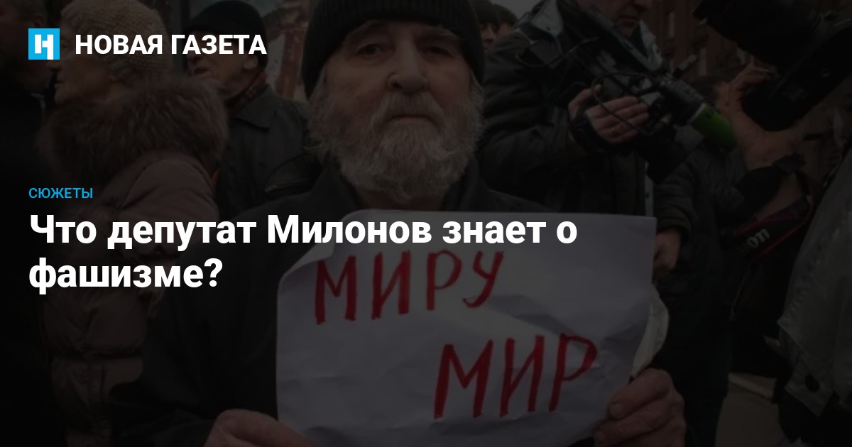 На митинг против ввода российских войск в Украину к Мариинскому дворцу (именно здесь находится петербургское Законодательное собрание, поддер-жавшее меры Правительства РФ) 75-летний блокадник, инвалид II группы Игорь Степанович Андреев вышел с маленьким самодельным плакатом. На альбомном листе были написаны всего два слова: «Миру мир». На свою беду, старик попался на глаза депутату Закса Виталию Милонову. Парламентарий с группой поддержки, а вслед за ними — казаки явились на Исаакиевскую площадь разгонять народный сход.