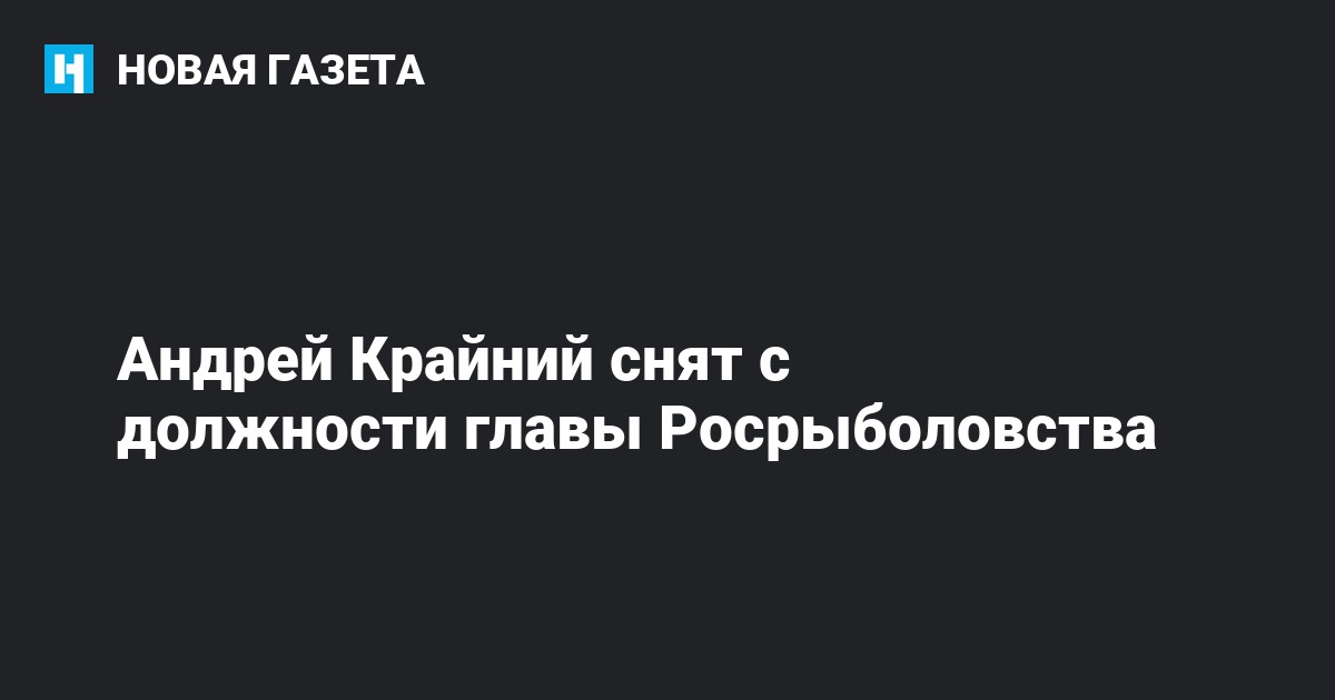 Фактически Андрей Крайний был освобожден от должности в январе этого года, когда правительство РФ постановило, что глава Росрыболовства будет совмещать свою должность с должностью замминистра сельского хозяйства. 17 января замминистра сельского хозяйства был назначен Илья Шестаков.