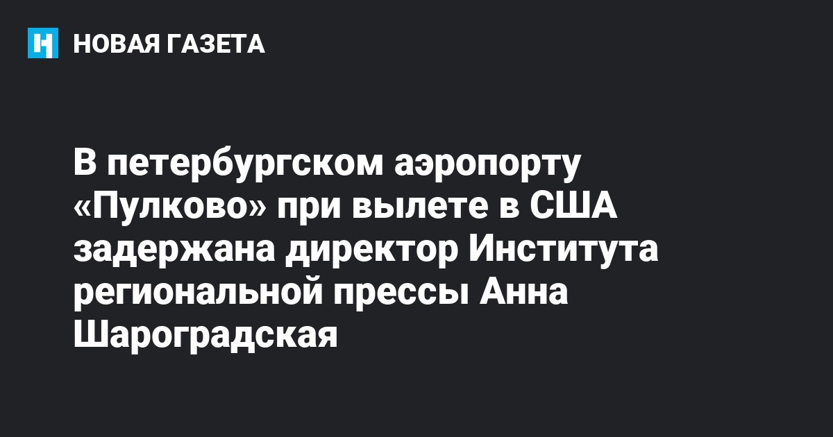 5 июня в 12.55 Анна Шароградская (директор Института региональной прессы, член международного попечительского совета ВМС (Балтийский Медиа Центр, Дания), член Совета Центра Гражданских Инициатив (США), член редколлегии журнала «Journalism» (Великобритания), ведущая международных образовательных программ для журналистов) должна была вылететь в Хельсинки, а оттуда стыковочным рейсом в США. Однако самолет поднялся в воздух без нее. Причины задержания директору ИРП до сих пор неизвестны. Уже несколько часов Шароградская и помогающие ей адвокаты тщетно пытаются выяснить: кто именно и какие претензии имеет к руководителю института?