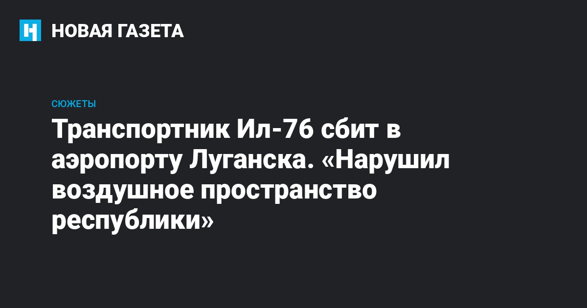 — В ночь с пятницы на субботу при заходе на посадку нашими войсками был уничтожен военно-транспортный самолет ВВС Украины ИЛ-76», — заявила «Новой газете» пресс-секретарь «ЛНР» Оксана Чигрина. — Самолет нарушил воздушное пространство нашей республики, несмотря на изданный приказ Болотова (Юрия, главы «ЛНР» — П. К.) о запрете на полеты. Нарушения нашей границы будут и впредь караться подобными мерами. Мы защищаем республику.