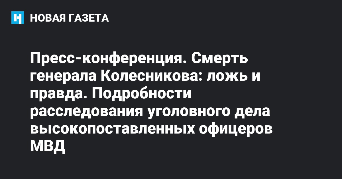30 июня 15.00 В Независимом пресс-центре состоится пресс-конференция на тему: Смерть генерала Колесникова: ложь и правда. Подробности расследования уголовного дела высокопоставленных офицеров МВД.