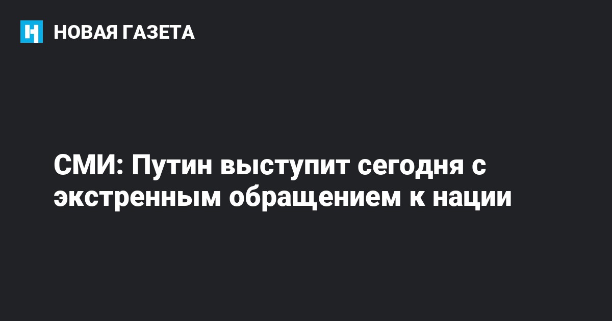 Сегодня вечером президент РФ Владимир Путин выступит на телеканале «Россия» с экстренным обращением к нации, сообщает Ura.Ru.