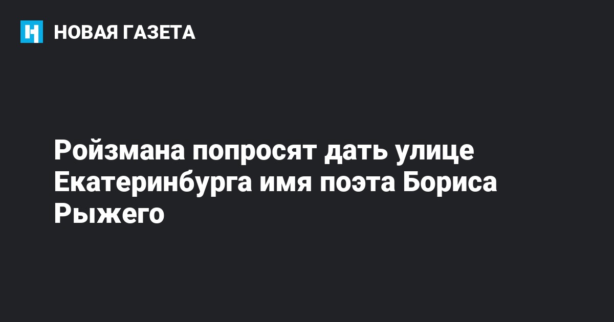 Петиция адресована мэру и гордуме Екатеринбурга. Автор, житель города, журналист Владимир Раевский напоминает чиновникам, что 8 сентября Борису Рыжему исполнилось бы 40 лет. К юбилею поэта Раевский предлагает назвать улицу его именем в районе Вторчермет, где жил и который любил Рыжий.