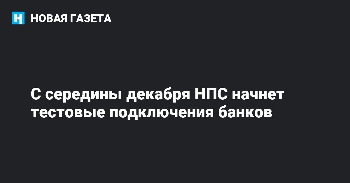 С середины декабря будут проводиться тестовые подключения восьми российских банков к Национальной платежной системе. Об этом заявил глава НПС Владимир Комлев газете «Ведомости».