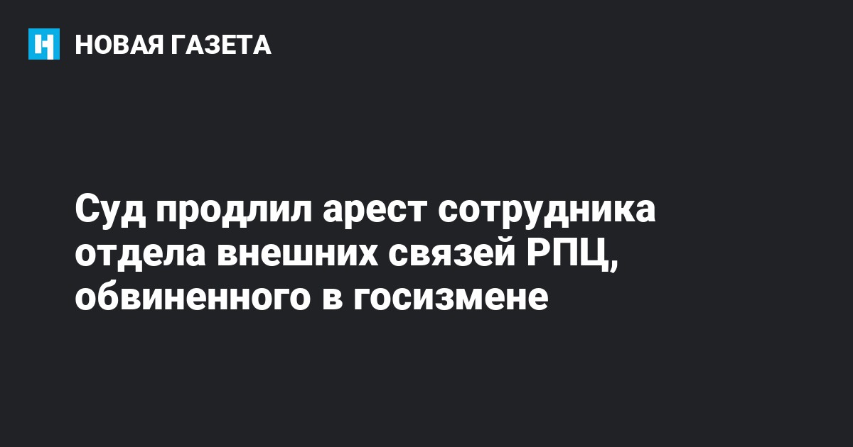 Лефортовский суд Москвы продлил арест сотрудника синодального отдела РПЦ по внешним связям Евгения Петрина, которого ФСБ подозревает в государственной измене и шпионаже. Пресс-секретарь суда Юлья Скотникова сообщила Интерфаксу, что Петрин арестован до 5 апреля.
