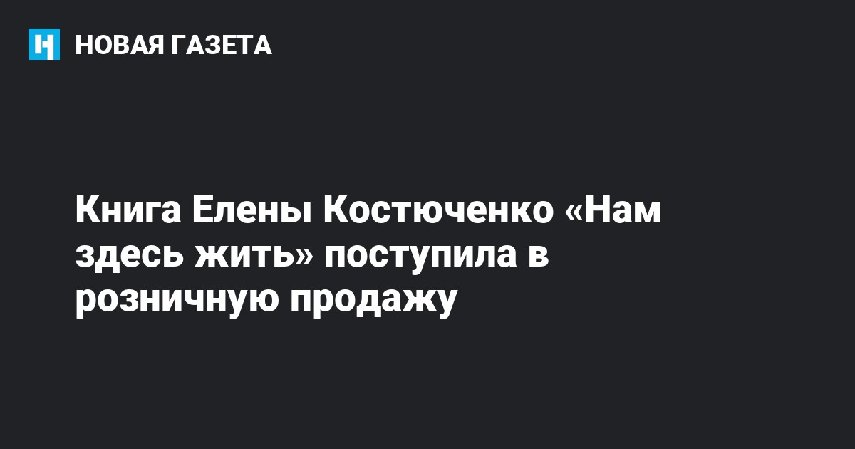 Сборник материалов специального корреспондента «Новой» Елены Костюченко «Нам здесь жить» (издательство «Времена», АСТ, 2015 г) поступил в продажу в книжные магазины Москвы и доступен для заказа в онлайне.