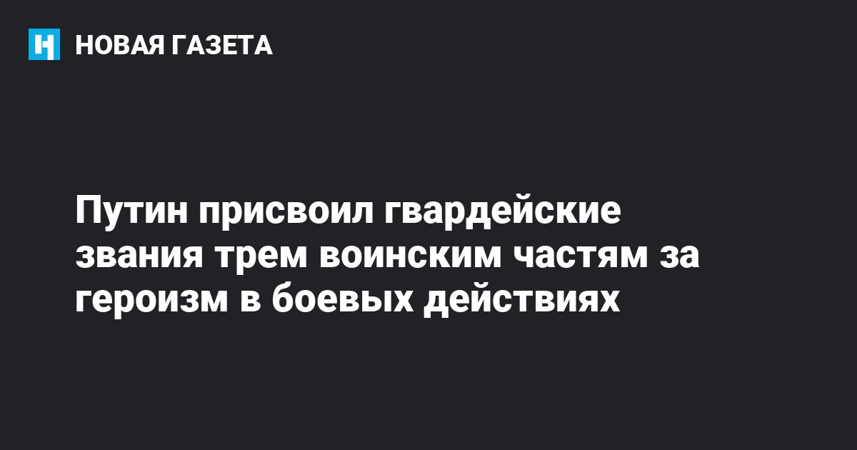 Президент РФ Владимир Путин присвоил гвардейские звания трем воинским частям за героизм в боевых действиях, сообщается на официальном портале правовой информации.
